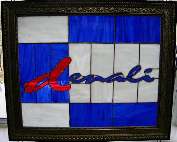 When I started working at my company, there was a typed piece of paper (no kidding) in the window identifying the company. That might work for a startup, but a serious and successful business deserves more....and I thought I should do something about it. So one weekend, I made an 8x10 sign for my office with the company logo. I based the colors and design off of our business cards, with a slight modification to make it more "visually interesting." My co-workers seemed to like it and in fact, the company CTO asked me to make another one, twice the size, for the corporate headquarters! I was happy to oblige and I'm really happy with how it turned out!